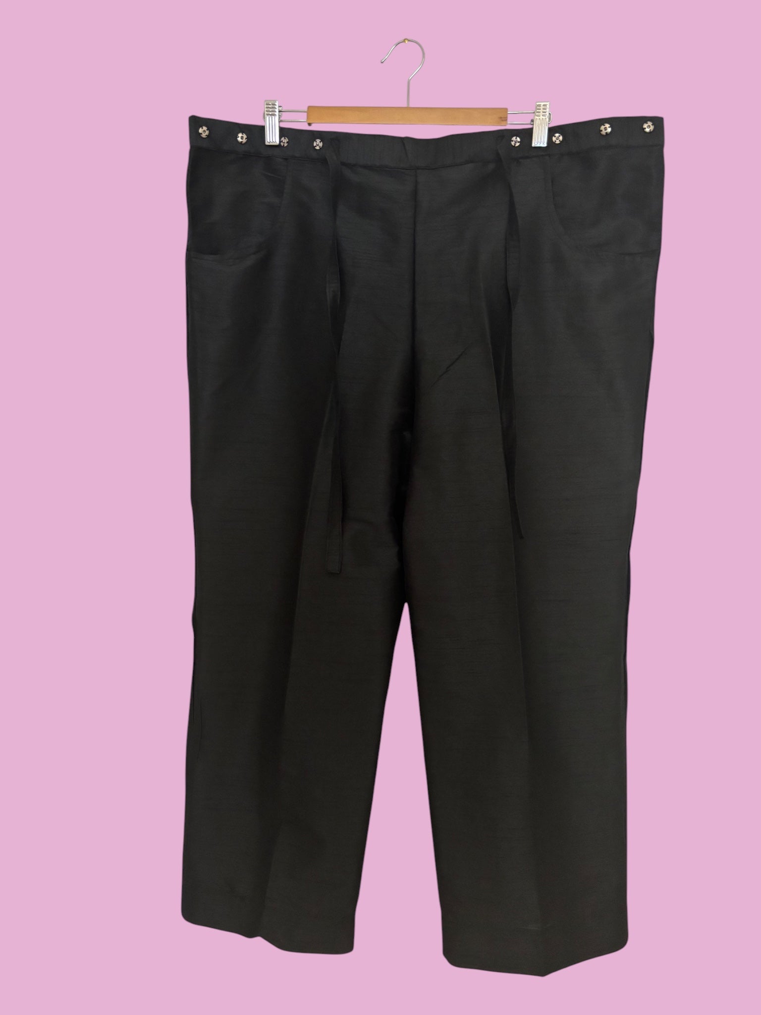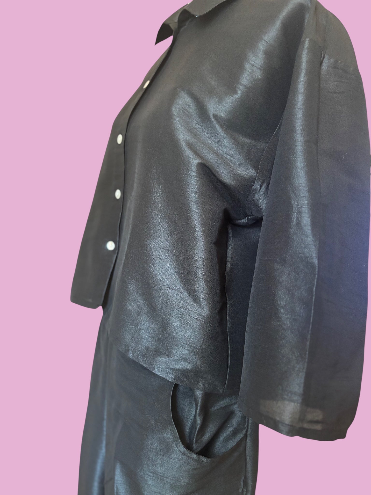 Combo camicia ampia e pantaloni regolabili in seta dupioni nero