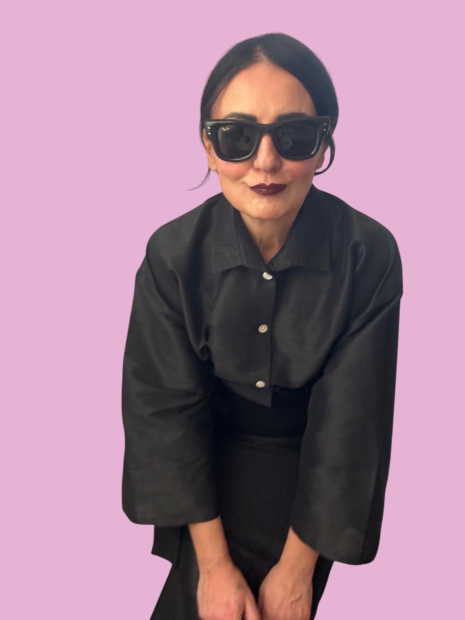 La camicia ampia in seta dupioni presenta una linea morbida e strutturata allo stesso tempo: le proporzioni generose, le maniche ampie e il taglio essenziale valorizzano la texture naturalmente irregolare del tessuto, creando un effetto luminoso e materico.