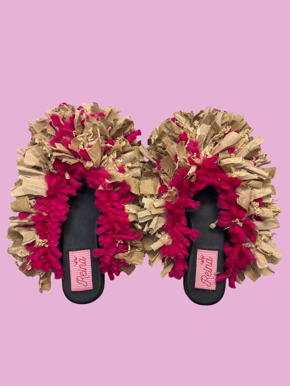 Le Misce Persian Pink sono realizzate su ordinazione, una ad una, per offrire un prodotto unico e curato in ogni dettaglio. Ispirate all’eleganza vaporosa dei gatti Persiani, uniscono tessuti sfrangiati beige a intrecci fucsia vibranti, creando un effetto voluminoso e scenografico.